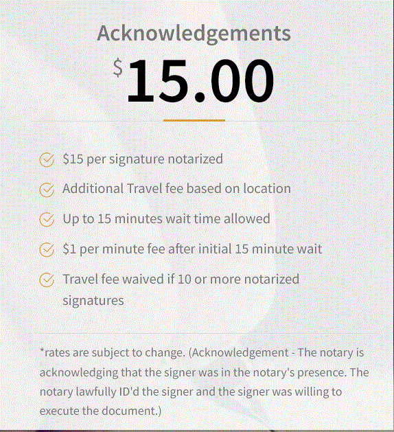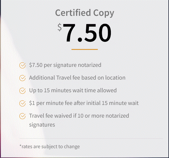 Fees are determined by the number of signatures being notarized during the same visit.